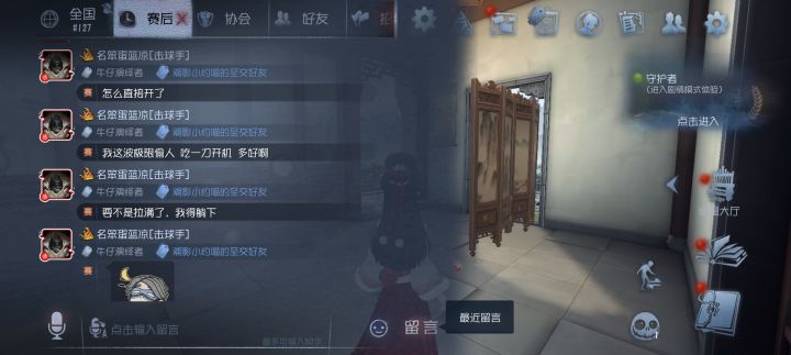 约瑟夫的一把排位赛,斗牛士倒地下室了击球手在卡着耳鸣,我在压机但是处在镜像阶段,如果击球要救那么救需要在镜像结束前救下来,我卡着镜像最后一秒开了但是击球才救下来,赛后是这样,我刚想问他就退了