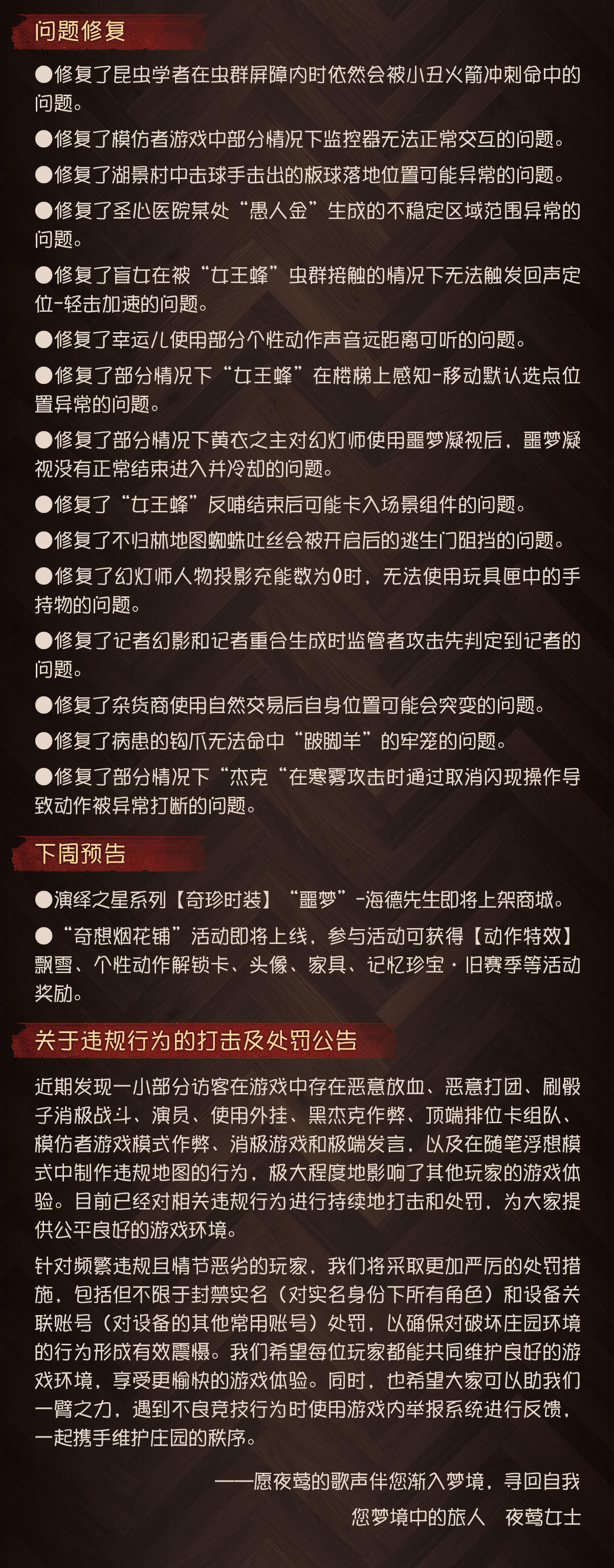限时公共地图“铃音踏雪”将于12月18日维护后开放,圣诞主题活动也将同步开启,访客们可以通过参与活动获得【独特时装】作曲家-圣夜协奏曲/【独特时装】木偶师-雪铃铛(二选一)以及【奇珍家具】 精灵雪咚咚等奖励! 点击视频,即可查看游戏内效果展示~ #第五人格