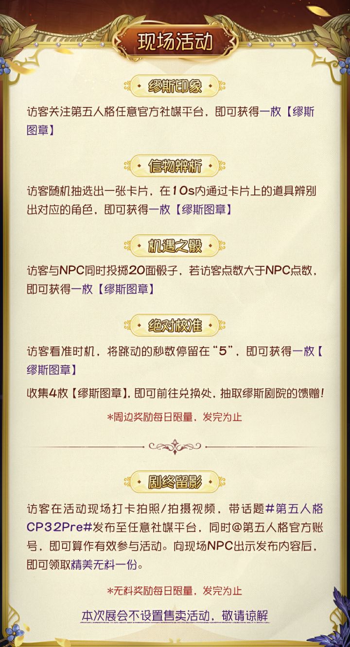 第五人格即将参展COMICUP32 Pre!欢迎各位访客莅临缪斯大剧院的现场!繁星流转,星途闪耀,一同参加这场星光盛会吧!【展会时间】12月27日-28日【展会地点】杭州大会展中心【展位信息】6A馆CPB149展台#第五人格#CP32Pre#第五人格CP32Pre