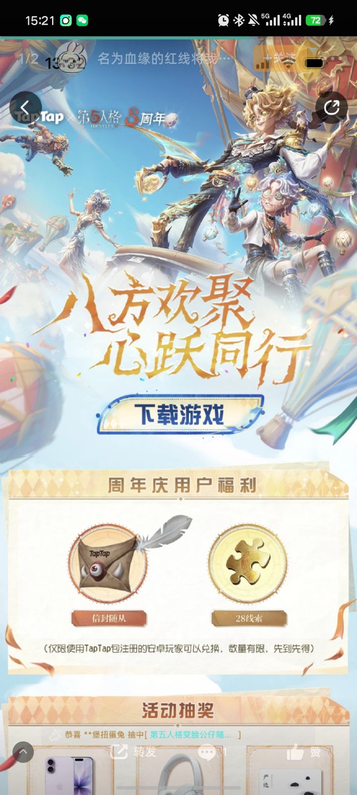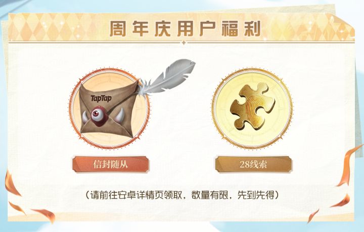 各位亲爱的侦探们,庄园周年庆的狂欢钟声已经敲响,羊毛还不速速薅起来?!🐑✨ 为了回馈大家的支持,这次我们为TapTap的安卓玩家争取到了超稀有的【独家限定福利】!只要前往TapTap社区活动页,就能免费领取TapTap专属的【信封随从】✉️! 别看这个小家伙长着小尖牙, 忽闪忽闪的好奇大眼睛绝对能瞬间萌化你!带上这只哥特风满满的小信使在庄园里“遛鬼”,你绝对是全场最吸睛的靓仔!😎 此外,还有【2