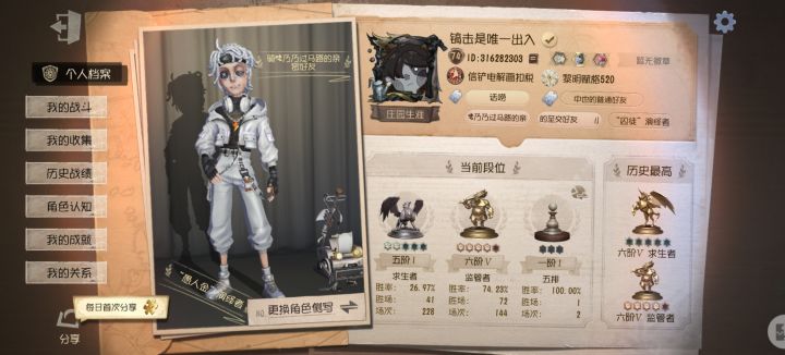 第五人格真的是个很好的游戏啊。这是我的号是渠道服的。而可以登录这个商场的手机号已经不用了。也就是说要是我这个手机坏了这个号我就再也用不到了。本来没想过搞小号的但是直到我原本的手机坏了我才意识到这一点。(爱你老五明天见。