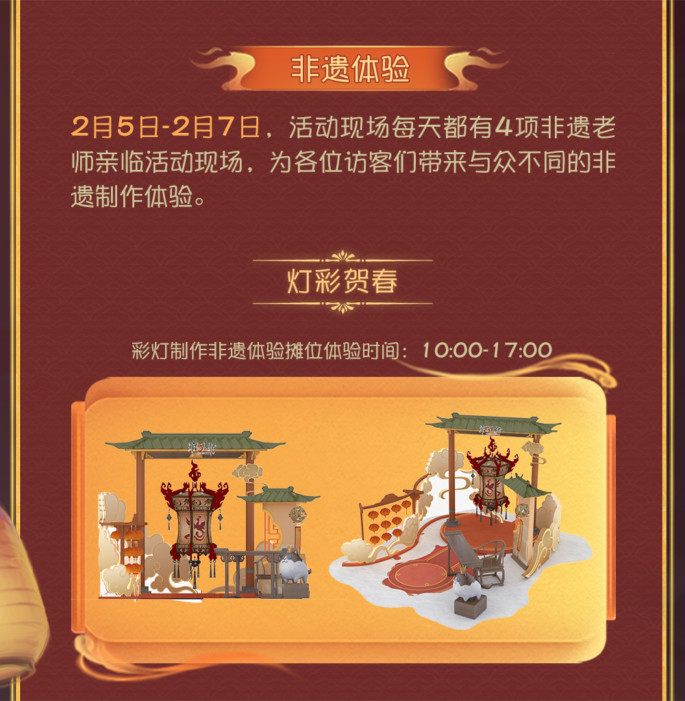 奇灯迎春,庄园共庆! 第五人格×中国彩灯博物馆——“五”骥映春 非遗主题活动即将开启 活动时间:2月5日-2月7日 活动地点:中国彩灯博物馆 (四川省自贡市自流井区公园路6号-自贡彩灯公园内) 本次“五”骥映春 非遗主题活动在国家级非遗“自贡灯会”民俗和四川省省级非遗“自贡彩灯传统制作工艺”项目的保护单位中国彩灯博物馆 举行,这是目前国内唯一专门开展彩灯文化收藏、保护、研究、展示的博物馆,