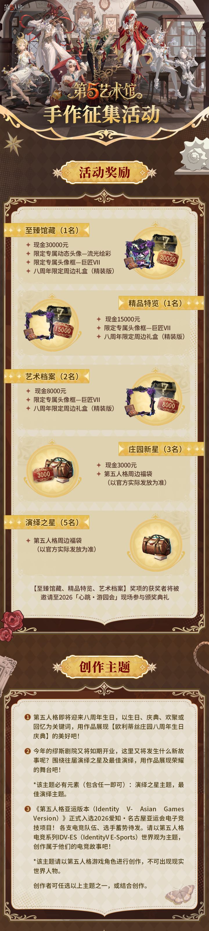 周年庆版本全新家具: 【奇珍家具】海之城(周年庆活动奖励); 【奇珍家具】甜蜜圆舞、【奇珍家具】沧渊(周年庆公共地图奖励); 商城上新【稀世家具】苍穹之泉、【奇珍家具】花息吊灯、【独特家具】花影回廊、周年蜡烛8及全新春日套装组合家具 游戏内效果展示送达,点击视频即可了解~ #第五人格八周年 #第五人格 #八方欢聚心跃同行