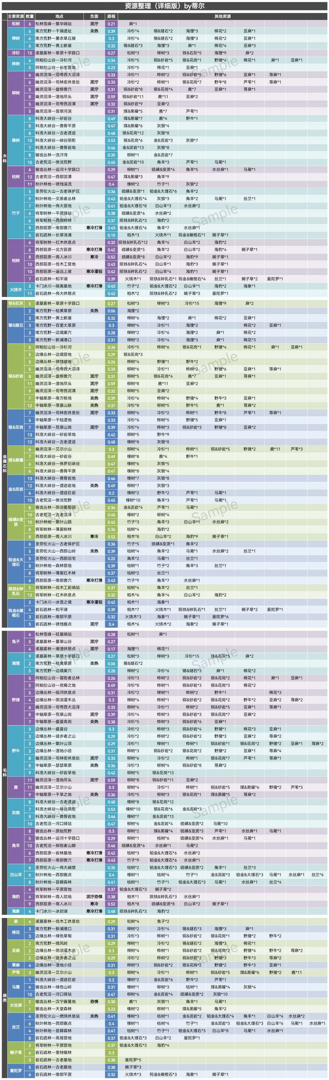 本文汇总转自手心攻略 红杉林地资源特征解析 苍凉雪山资源特征解析 水牛荒野资源特征解析 冰封山脉资源特征解 松果山谷资源特征解析