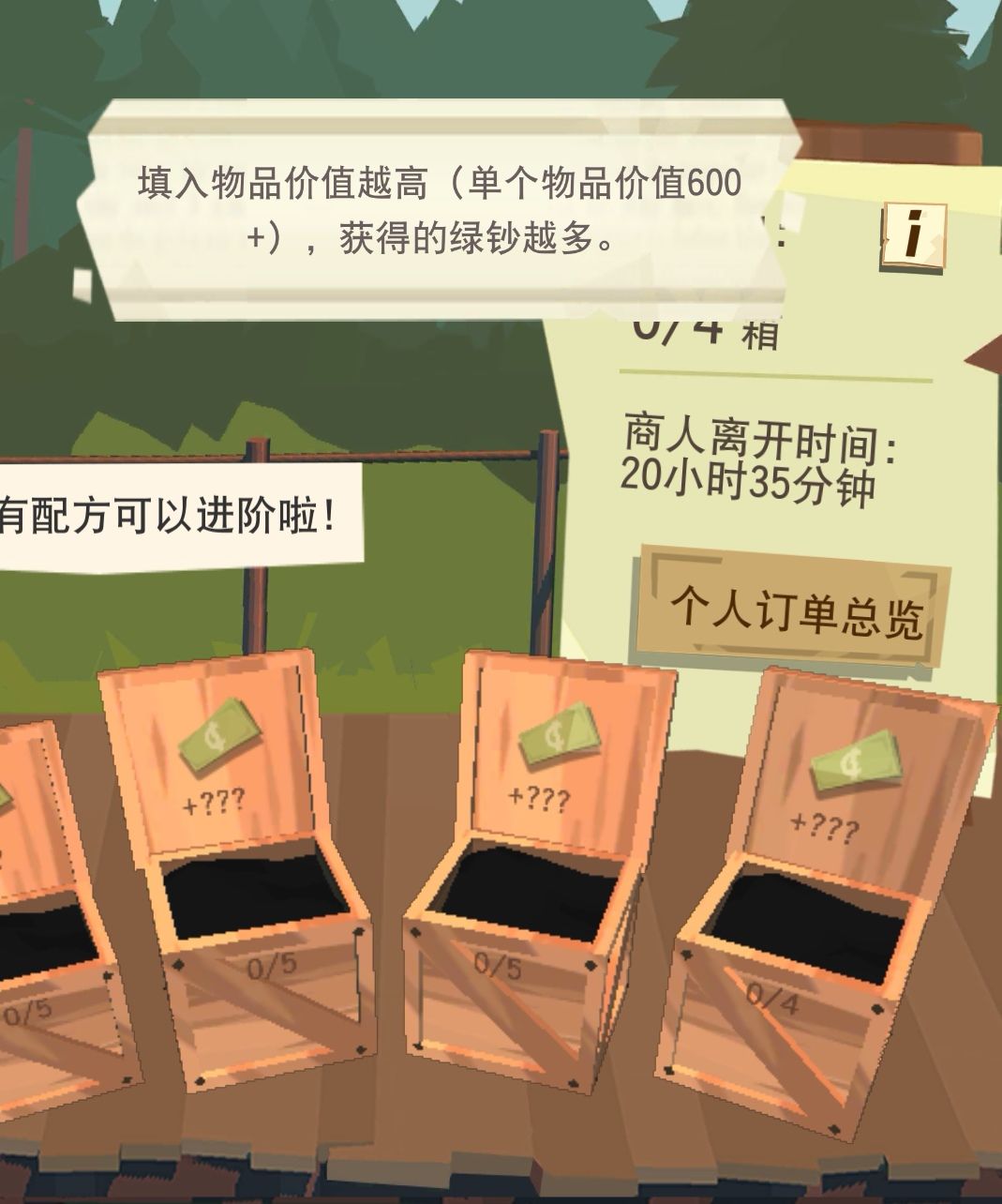 首先这是一个捡破烂的游戏😏 萌新们前期在路上可以靠啃苹果度过,左下角的红色小鸟是收集任务 [ps:就是那个戳它一下就会翻白眼的鸟😂] 长按可以查看你的任务情况,刚开始的时候会提示你喂它苹果,但最好不要喂,因为这并没有什么卵用,任务前期最好平均做到十级左右,因为前期解锁的图纸都用得到 [ps: 如果不平均做可能会出现接了任务但是没任务物品的图纸的情况] 然后你会发现有的营地有一个红色不明物体,你戳一