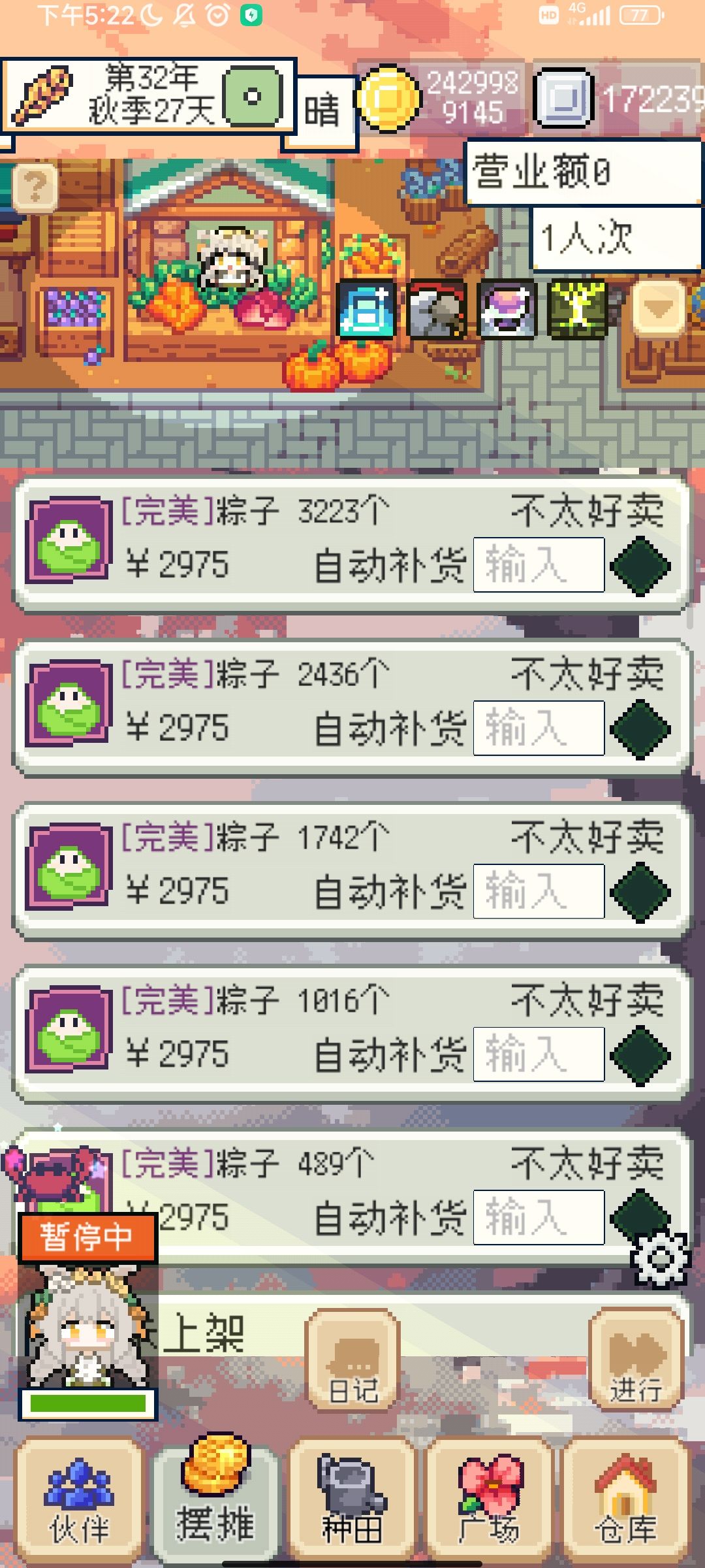 适合不想通过种田实现后期暴富的玩家 通过摆摊出售“红色品质甜菜”和“绿色品质米饭”解锁商店的物品后,大量进货制作“紫色品质粽子”来售卖。 你是否还在为体力不够,制作料理要频繁吃食物回复体力而烦恼? 赠送武器异刃给伙伴增加体力上限,这样就不用为没有体力制作料理而烦恼了! 能够每天大量制作料理之后,点上技能“量大管饱”,让每次制作的粽子数量翻倍! 到商店购买红色品质甜菜(9800)来制作砂糖,9800