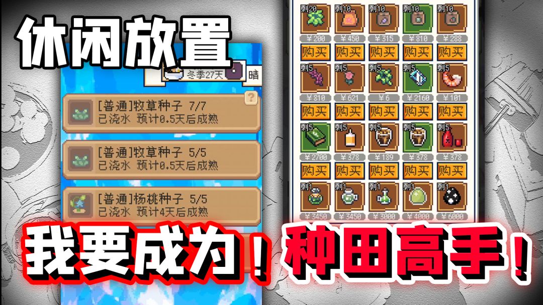 #种田高手 【最近重玩在做一个更全面的攻略,大家可以期待一下哦】新手前期思路(我比较极限流):1.开局建议看广告拥有全部,但是不看广告也无所谓,后期都会有的。(哦,补充一下,开局也会得到一个第10点所说的蓝色书,如果刷出品质肥料就是天胡开局)2.首先,游戏偏左下角有一个小螃蟹图标,是本游戏的作弊菜单,但不建议启用作弊功能,可以通过看广告开启加速功能(要不然实在是太慢了,浪费时间。)3.点击