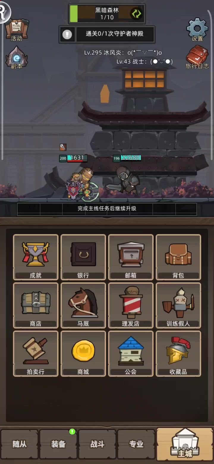 新区开服已经一个月了,入游第五天,合理运营能快速进前20,还在不断攀升。 1、开局第一天选开局英雄除了牧师其他都行,前300层的开局四人组楼主的配置是:射手/法师 - 战士(必要) - 僧侣/德鲁伊 - 骑士(必要)。 战士和骑士为什么必要分析: ①战士带独一无二的嘲讽和减伤,能很好地保护后排。 ②骑士被动光环群体加攻,也是不可或缺的增伤角色。 ③前期主c角色射手法师选其中一个,因为技能都可以打两