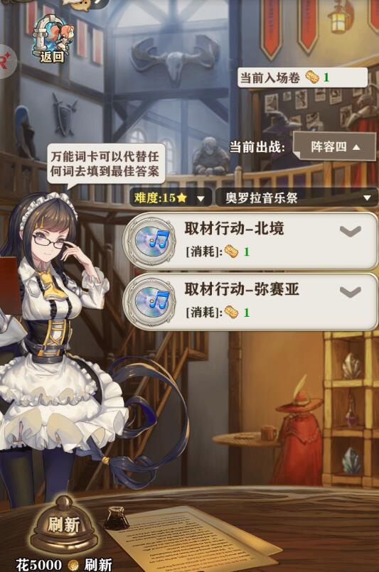 活动时间:10月1日0:00-10月14日 23:59音乐即希望,音乐即梦想,奥罗拉音乐祭盛大开幕!少女歌姬缪斯突然造访,提出了希望成为顶级偶像的委托,你于是化身偶像制作人,为筹备节目四处奔波,还要兼职填词人为新曲填词,到底缪斯最后能否脱颖而出,成为顶级偶像?一切尽在奥罗拉音乐祭。活动流程:Part1:收集词卡碎片,开始创作!*活动期间,将开放4种单人冒险和1个隐藏冒险。4种单人冒险每次会