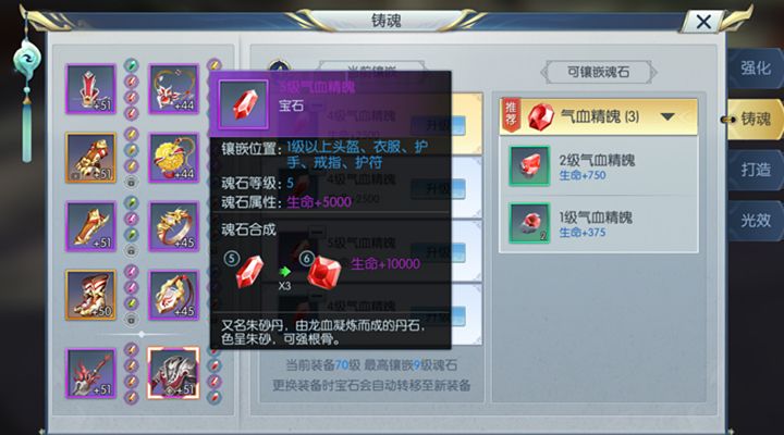 简介:气血精魄效果介绍在择天记这一款游戏中,通过装备的晶石镶嵌可以提升玩家的修为值和实战能力。目前一共有暴击晶石、物防晶石、法防晶石等9种晶石可以供玩家选择,通过对自身的装备镶嵌不同的晶石可以获得不同的属性效果的提升。那么不同的晶石又有哪些不同的效果呢,今天我们就一起先来看看气血精魄的镶嵌对玩家能够有哪些增益效果吧。气血精魄气血精魄镶嵌之后的效果是增加玩家的血量,血量是玩家防御的根本,不算其