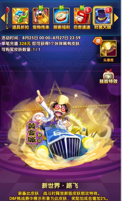 【已开奖】路飞黄金城飙车稀有皮肤已上线!别问了,先上车!