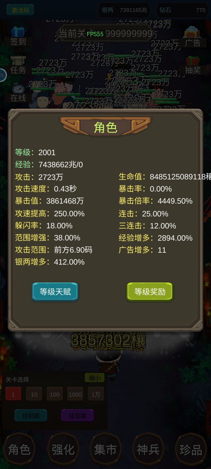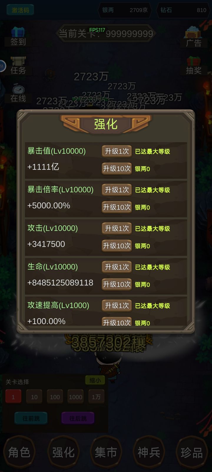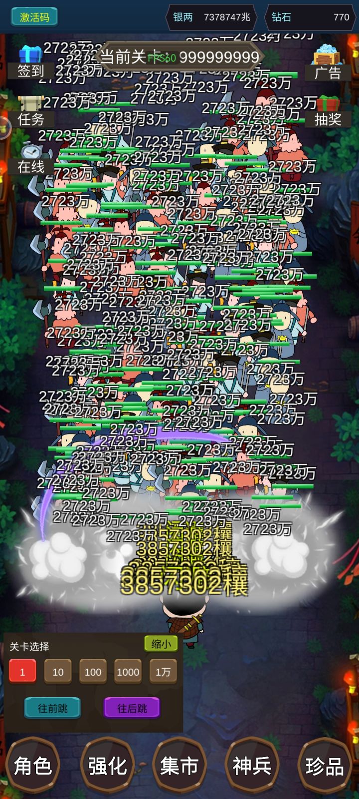 没意思,1级直接选择1万层,然后连点器最快速度店里往后跳,跳到99999999999999层,闯关!一下金币就够够的了!通关太简单了
