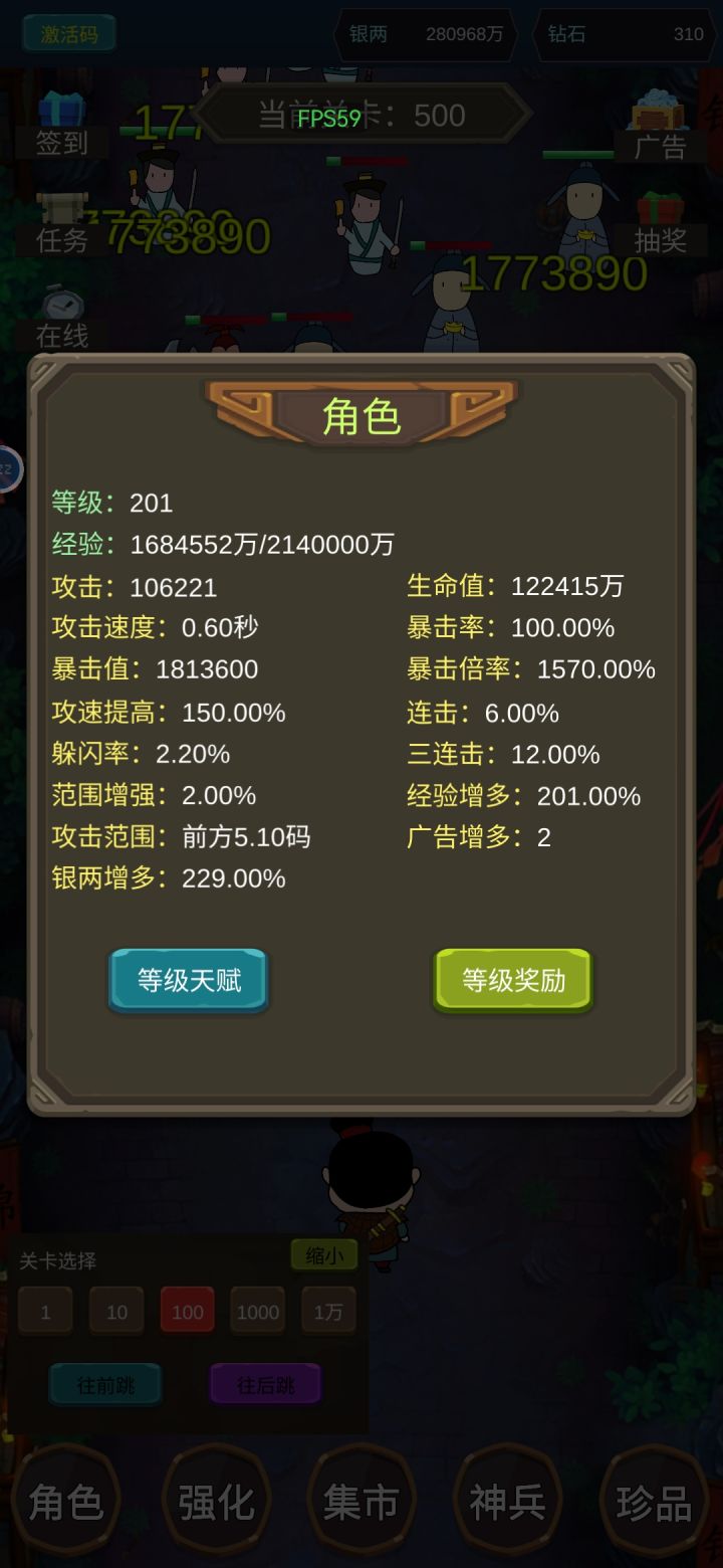 银币属性堆银币加成,等级属性堆躲闪,然后就是选择一波怪撞不完血条的关卡,使劲把商店的装备和属性加成买完就行,简简单单