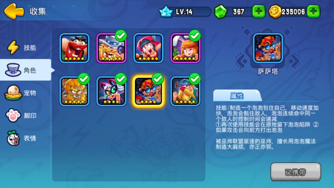 身份:被巫师联盟驱逐的巫师怪咖,后因未知目的加入野蛮部落,巫师群体对他的恨、更甚于野蛮人。 生日:4月1日; 星座:白羊座; 性格:外表奇葩搞怪,实则深沉睿智,神秘莫测; 爱好:恶作剧,玩弄人心 好友:看心情; 讨厌的人:看心情; 弱点:暂无; 特长:通晓时间之秘法,可以看见一个人的过去与未来;一旦被他的魔法泡泡控制住,将任其宰割。 技能:制造一个泡泡包住自己(我就是爱泡泡别让我停下来)泡泡可以黏