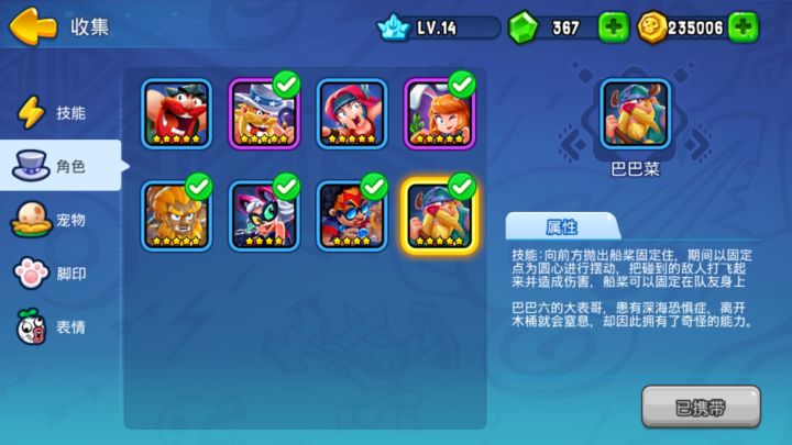 谁能比我更传说?!巴巴六的大堂哥!我不怕嘲笑不计后果不畏后人评说我认定的事 一定要做无论是对是错【技能设定】抽出桨并踩在桨上,之后可以在桨上旋转撞击敌人1. 释放划桨技能后,人物会往面对方向跳跃,并且建立一个支点将手中的桨进行旋转,再次攻击,旋转效果消失2. 支点可为地面或队友,若为队友,他会带你一起移动3. 在划桨领域内,巴巴菜可以在里面随意进行移动,触碰到旋转奖的对手会