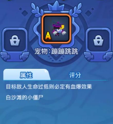 《野蛮人大作战》新版本上线正式服,全新宠物双蛋连发,强势正面进攻还是坚守持久战,两大宠物特性完全迥异,让蘑菇岛战斗之旅更加精彩!《野蛮人大作战》版本更新,努力完成任务,抢先获得宠物吧! A-Level强攻型一只来自白沙滩的小僵尸,通过自身的努力终于成长成为了最顶级的存在——蹦蹦跳跳,嗜血的它对于伤上加伤可谓是驾轻就熟,当蹦蹦跳跳一看见伤口,就犹如闻到腥味的鲨鱼兴奋不已,能令携带者自动拥有血爆