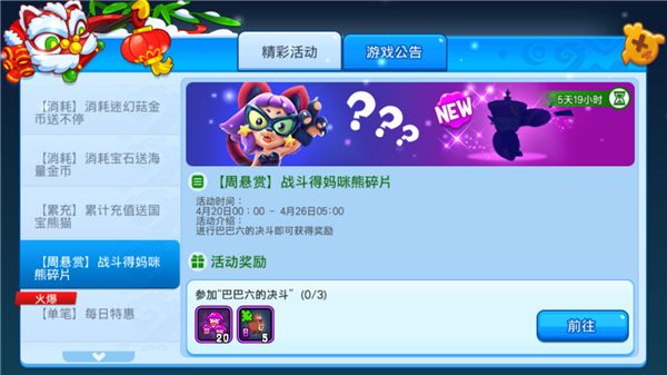 《野蛮人大作战》每周活动更新 惊喜福利领不停《野蛮人大作战》每周都会有不同的活动送出海量的福利,满足每一个玩家的愿望,相信有不少的野蛮人玩家都在想着本周福利活动玩法到底是什么吧?毕竟这可是关系到咱们能否正常领取到奖励的关键之所在哟,因此下面就来为各位简单介绍一下本周福利活动该怎么玩,希望各位能够通过如下的介绍领取到心仪的奖励。 坚持战斗 荣耀同在4月20日-4月26日,凡是参与进行巴巴六的