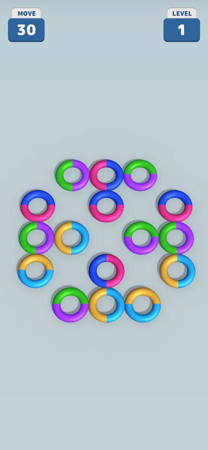 Welcome to "Hoop Loop - Color Match", a vibrant and engaging puzzle game where your goal is to match and stack rings to create towering columns that burst in satisfaction. Set in a grid-based play area, rings of various colors await your strategic to...