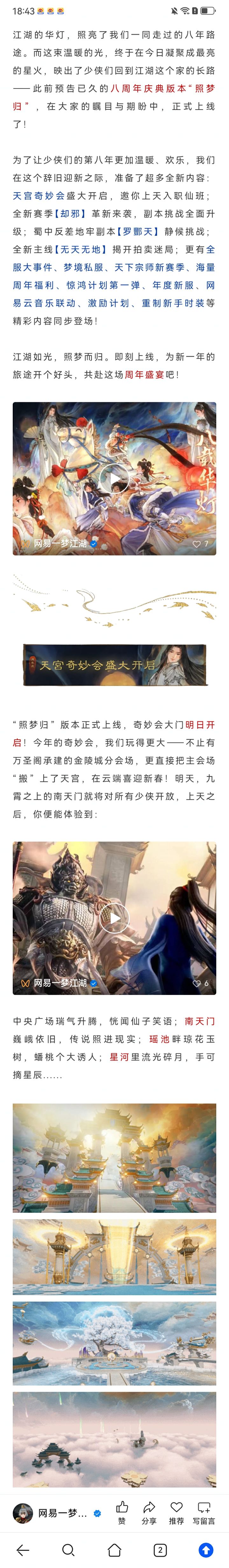 八周年庆典版本“照梦归”定档1月30日,八载华灯,与侠同归江湖
