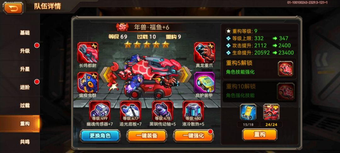 亲爱的猎人:2.4.03版本已经更新啦,主要修复并优化了一些内容,让我们一起来看看吧! 【新增】 新增战车:寂灭,朱雀,青鸾,幽鬼 新增人物:暗星·冈瑟,烈阳·格雷姆,皎月·希尔 新增武器:辉耀主炮,辉耀副炮,辉耀导弹,斗狼獠牙,斗狼利爪,群狼飞弹,熔火主炮,炽烈副炮,哮焰飞弹 新增装甲:幻影装甲,无畏装甲 新增跑图动画:交锋、年兽·吉祥、熔铁、探索者、巡空、星云、萤火 新增了若干成就任务 【优化