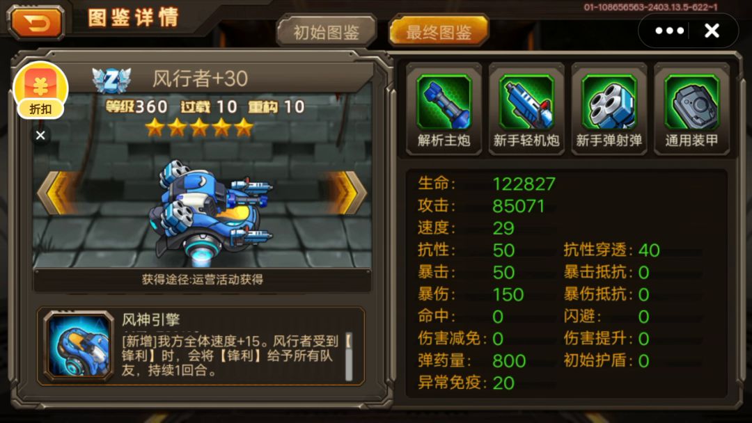 面板50w攻击左右,猴解20,樱珠馆长+10,肉车675抗性+3坚固,攻击防御车的配件尽量红色7+10更好,配件质朴,甲壳。照搬应该不可以过[表情_尬笑]