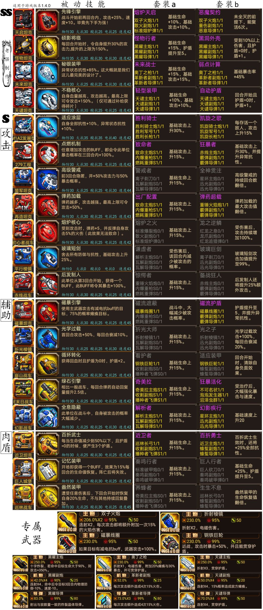 作者:老骚 配图:老骚 合金很多坦克技能都是不错的,以下只提供我的一些建议,大可以玩出自己的特色,不必追求和别人一样。 平民阵容: 主力:天启,发展,磁暴,折光 主力或备用:再造,未来,279,幻影,末日,近卫/巨人 土豪阵容: 主力:天谴,怪物,天启,发展 主力或备用:磁暴,再造,279,幻影,末日 以下分别进行介绍,介绍顺序和图鉴顺序一致。 SS级战车 1 天启 获取方式:第1、3、4、5、6
