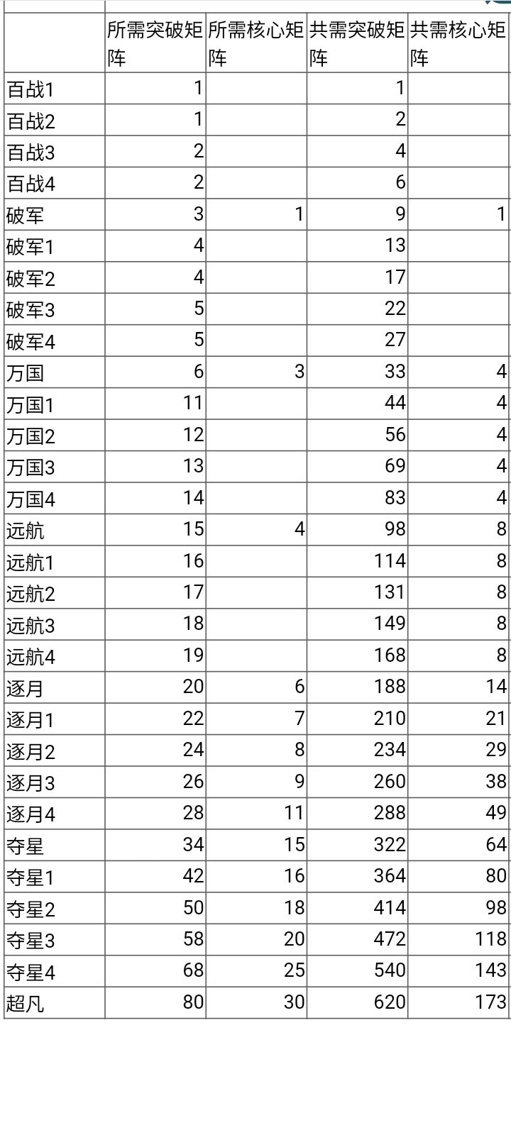 矩阵进阶突破表(自制)