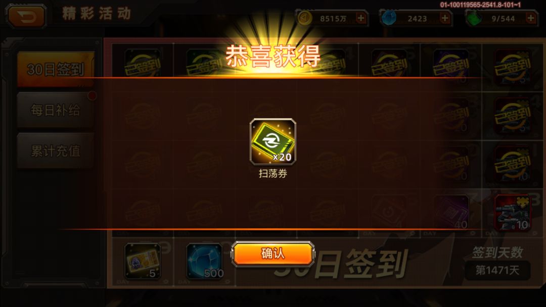 激动。签到白嫖了20扫荡图