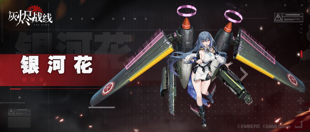 名称:银河花 类型:轰炸机 型别:中型 出身:航空技术研修会 所属:极东重钢学联 —— 在代理人的指挥下,City总算渡过了与灾兽的战争中最危急的关头。 获得喘息之机后,许多原本不惜代价也要继续推进的ARMS开发项目须要进行重新审视,而极东重钢学联方面也提出了将一部分新型DOLLS出借给维修会使用的合作计划,以使新机型获得实战测试机会并和维修会分摊它们的试验成本。 刚完成新训的银河花将是根据该计划