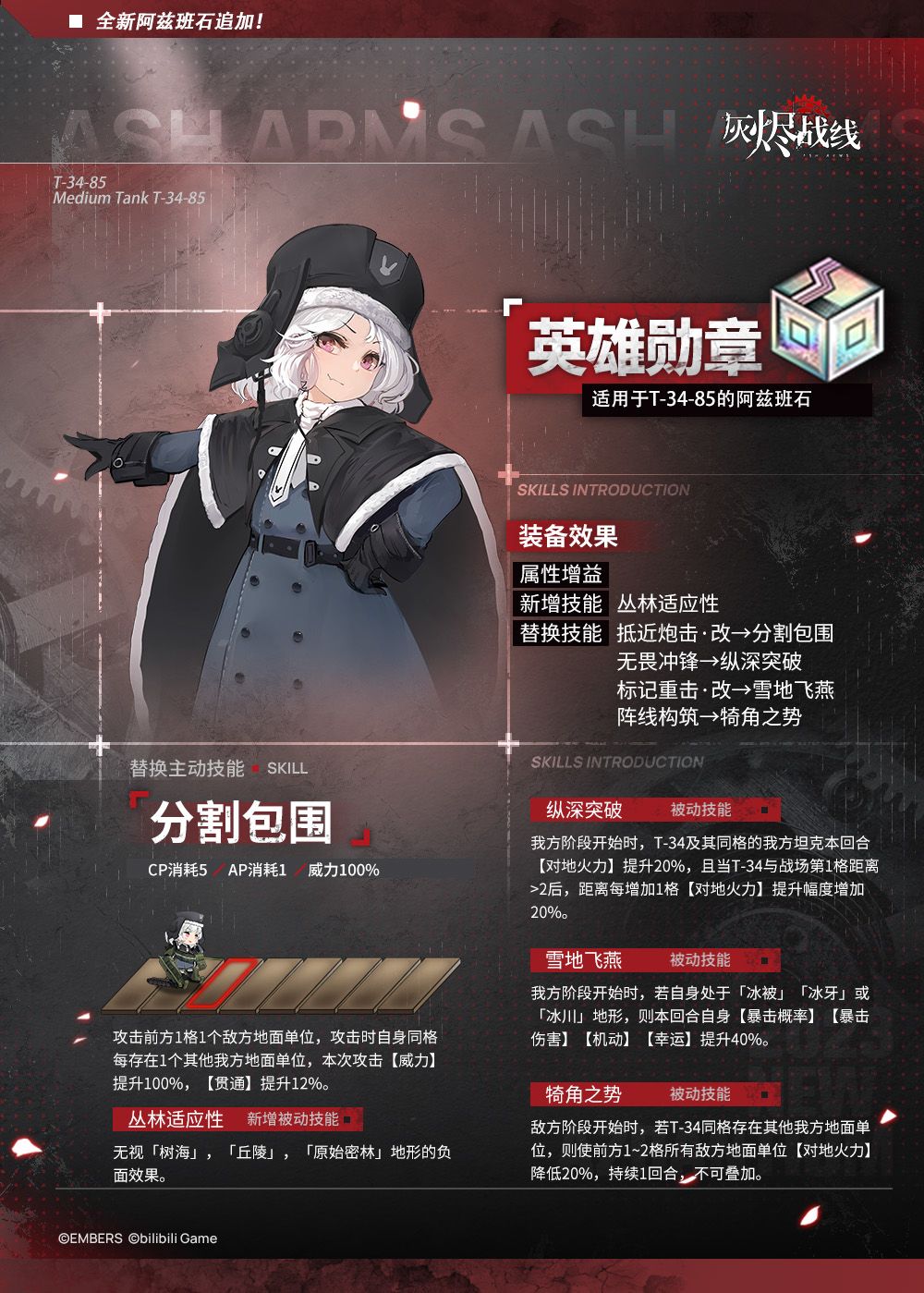 尊敬的代理人: 2023年8月1日维护后,以下2名DOLLS的专属阿兹班石将会开放研发。 届时大家将能消耗「阿兹班晶核」和「记忆体」研发对应的阿兹班石: ★3重型轰炸机「霞樱」——「艾米莉」 ★2中型坦克「T-34-85」——「英雄勋章」 更多详情,请点击图片查看