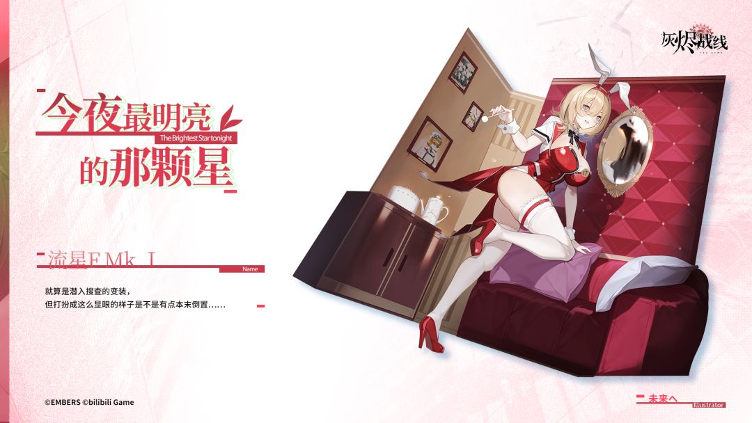 就算是潜入搜查的变装,但打扮成这么显眼的样子是不是有点本末倒置…… —— ★3 重型战斗机「流星F Mk.Ⅰ」限定涂装「今夜最明亮的那颗星」 将于7月18日维护后-8月8日期间,在萨维尔街裁缝会限时上架! 代理人可使用服装采购券获取涂装!