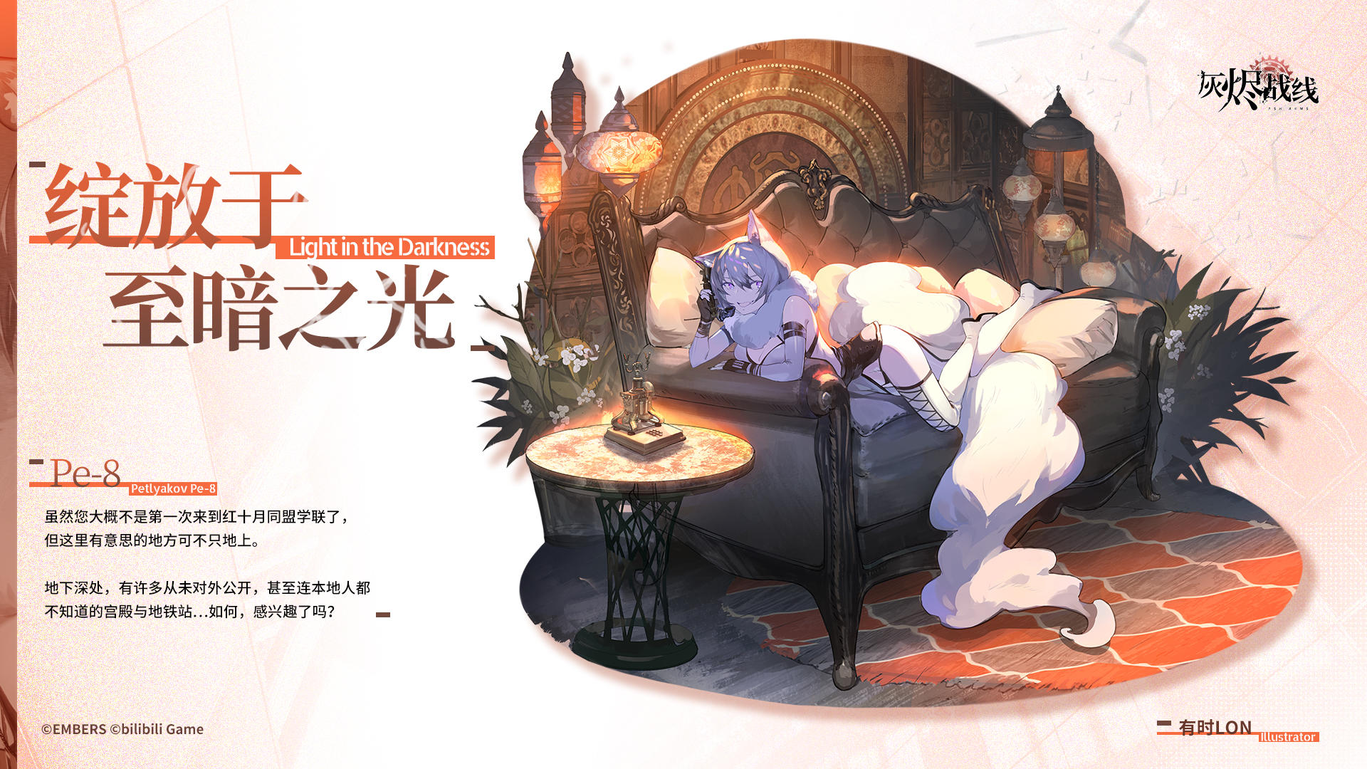 虽然您大概不是第一次来到红十月同盟学联了,但这里有意思的地方可不只地上。地下深处,有许多从未对外公开,甚至连本地人都不知道的宫殿与地铁站…… 如何,感兴趣了吗? ——★2 重型轰炸机「Pe-8」限定涂装「绽放于至暗之光」将于2月28日——3月21日期间,在萨维尔街裁缝会限时复刻!代理人可使用服装采购券获取复刻涂装!