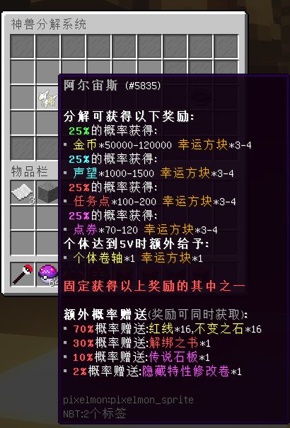 服务器名称:时光宝可梦服务器加入(企鹅):851733886手机电脑数据互通,让你在身边没有电脑的时候,也能轻松地游玩服务器服务器特色:1️⃣每日签到,签到七天送究极异兽纸御剑 2️⃣在线空投,固定时间点送3️⃣神兽分解,百分百出幸运方块(概率出传说石板或无极陨星等稀有道具)4️⃣不禁任何道具,(特性膏药、王冠、薄荷)均可免费使用5️⃣主城开放祭坛和圣杯,供所有玩家使用召唤阿尔宙斯等极品神兽
