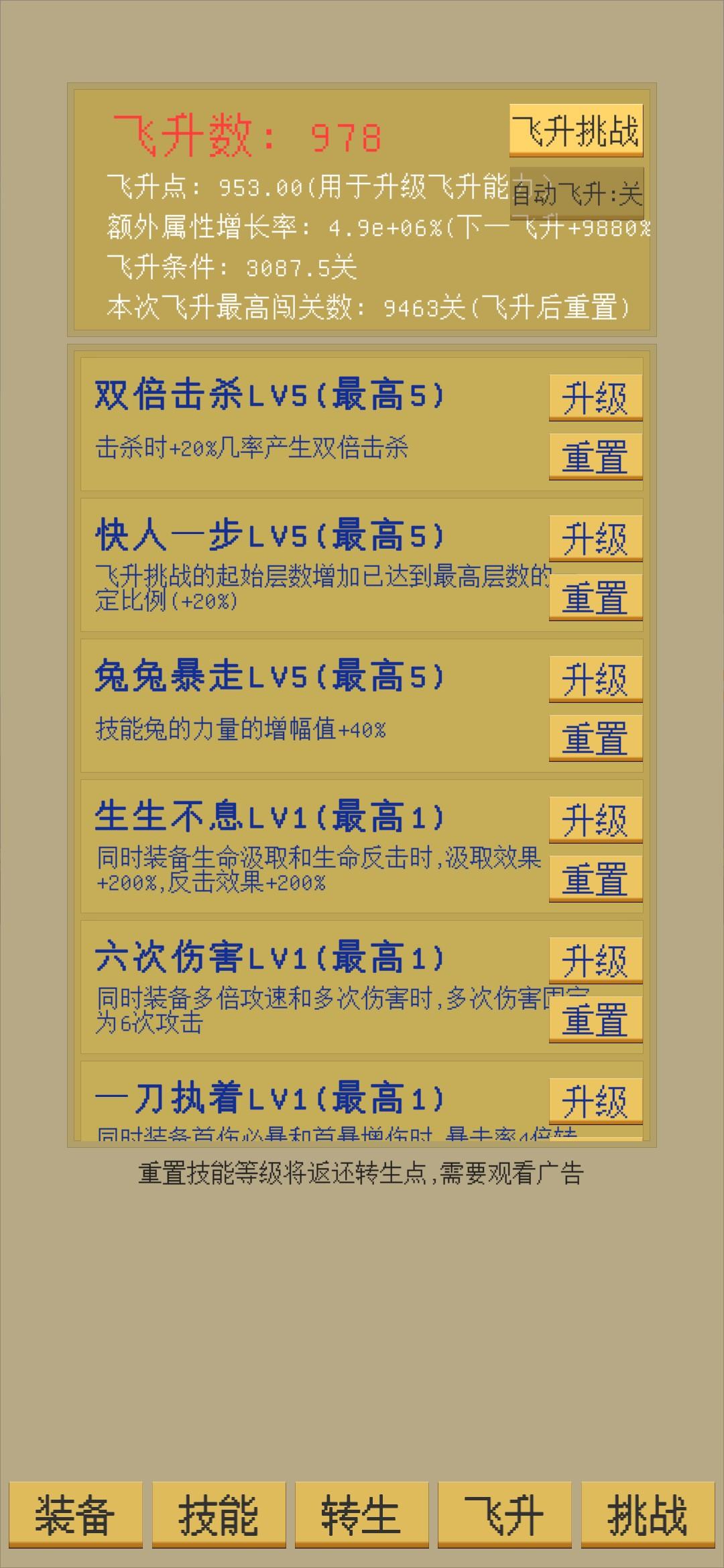 2-每天加速增益12个广了,后续对转生点技能设定一个门槛,例如:前5转生点,或者前10转生点,可以不用广告重置