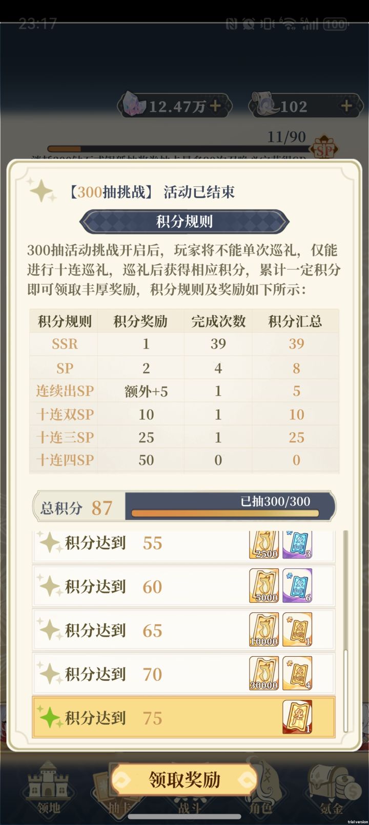 真有意思啊我不开三百抽就大保底,开三百抽就让我差几分35~40,再别说希望增加粘度了,纯快餐小游戏。