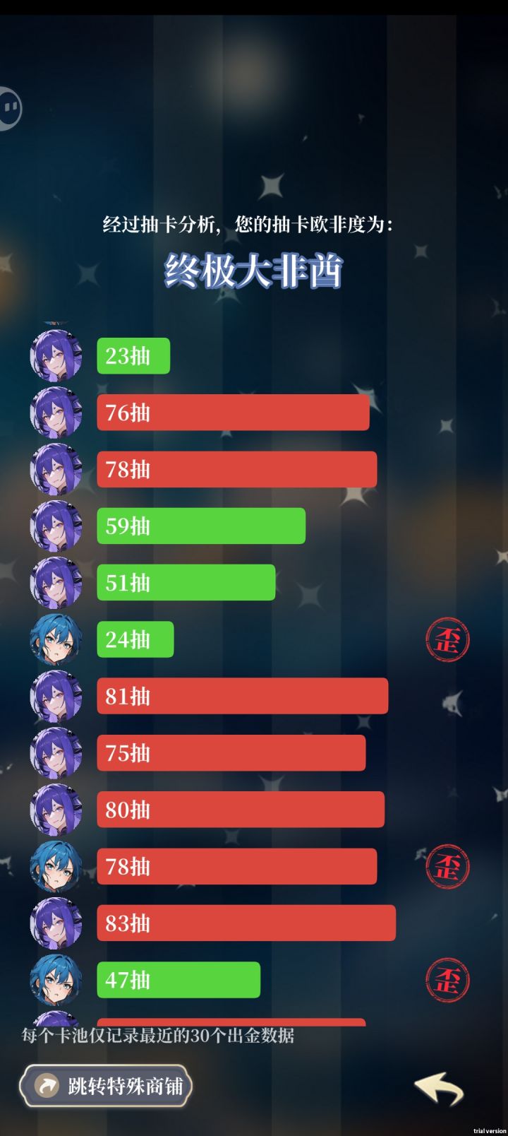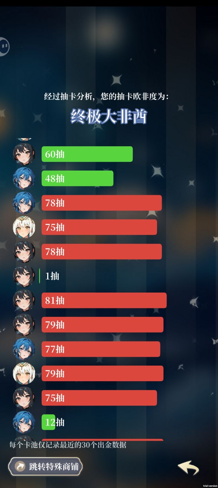 说实话,这张卡我第二天就出了,我承认刚开始那几天确实是很爽,直到后面我想升技能之后,我才发现是真的坐牢,那3级技能升到4级简直就不是人生的,每次抽到sp,我至少要抽50多个本体,往那一瘫就是抽,抽奖能抽半天,咱就说这个升技能能不能加个保底呀?不然真的很坐牢,像欧皇卡和非酋卡,要把些sp技能升满得抽多少个呀?那个券每天就那么多,要抽多久呀?