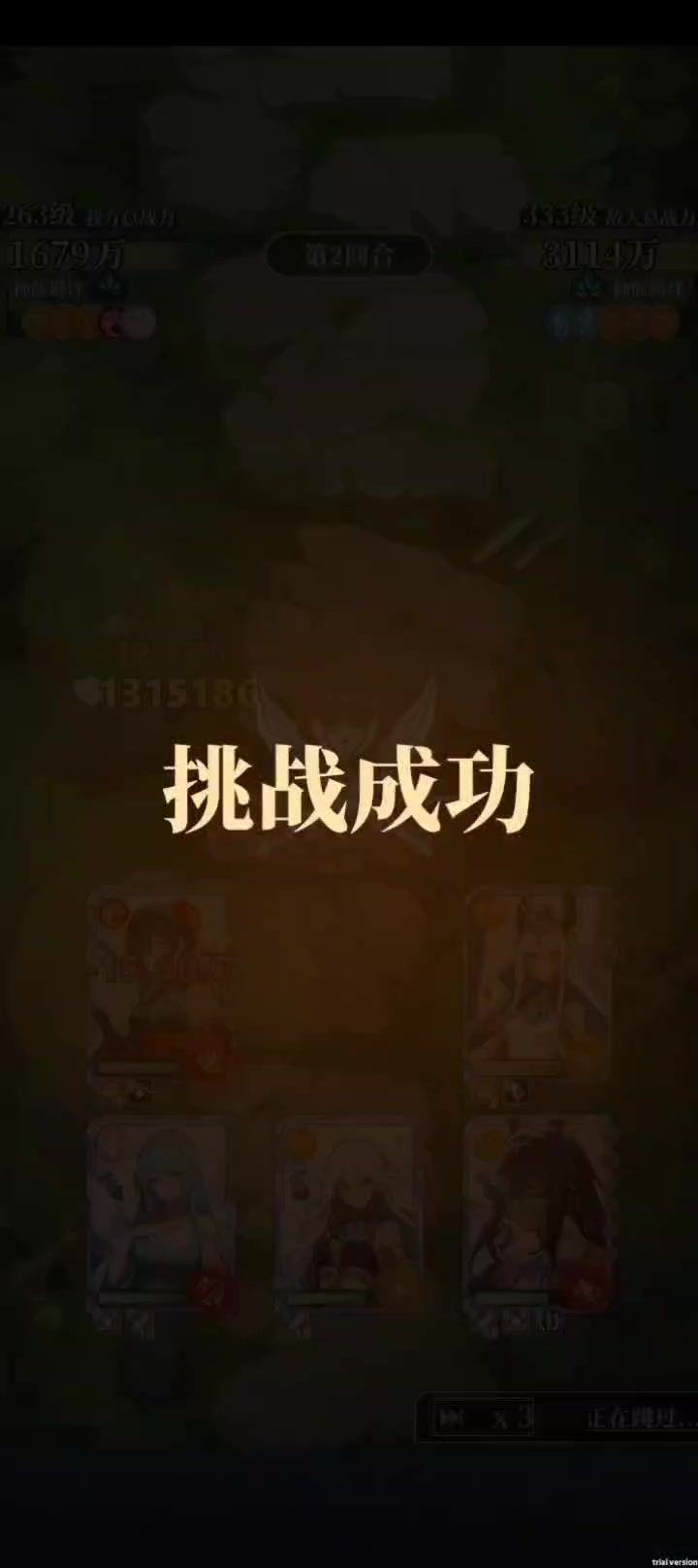 今天正常上游戏推图,打着打着突然像视频中这样,背景还在打当前关卡,结果一直显示通关成功,现在已经1000万战通关了