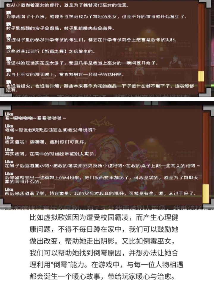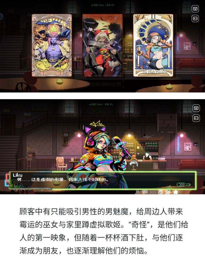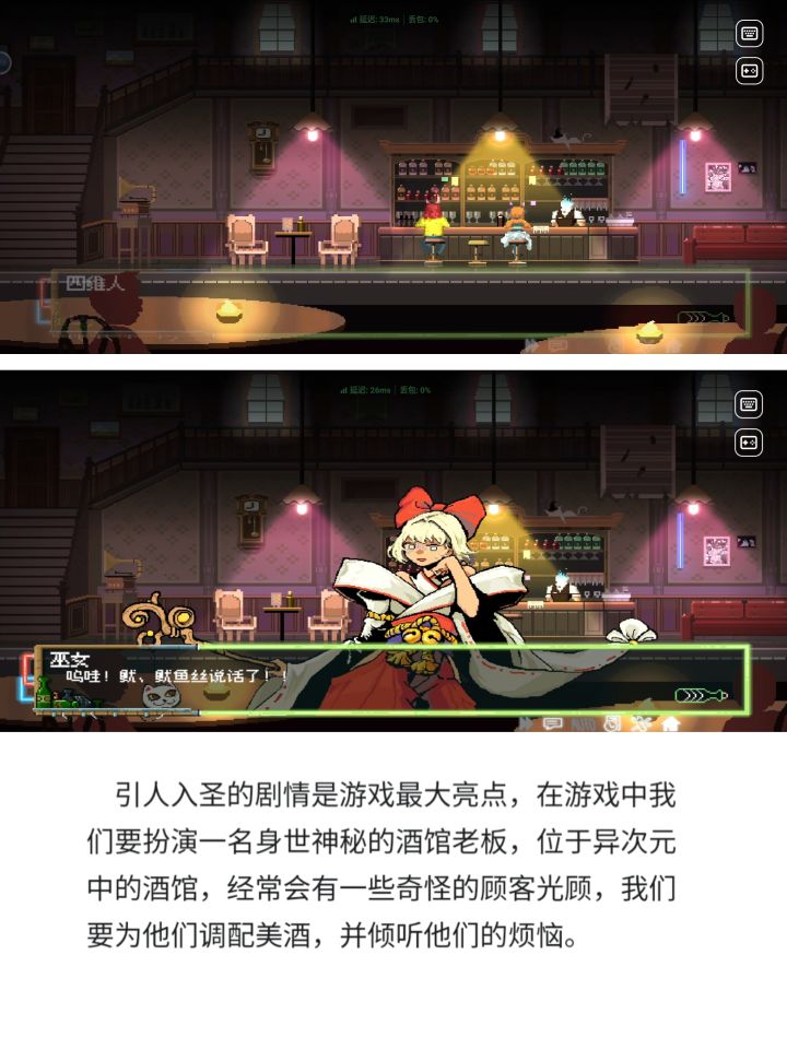 游戏:宇宙尽头的酒馆平台:TapTap云玩🎮游戏介绍:像素风的剧情向avg游戏,当一名宇宙酒馆的馆长,听不同位面客人带来的故事,为他们调调酒,闲谈唠嗑,享受这一刻的宁静~🎮游戏亮点:性格迥异的客人厄运巫女和她任性的神明大人疯狂吸引男同的男魅魔羞涩可爱但实际是家里蹲的虚拟歌手话唠且爱管闲事的四维生物🎮游玩体验:通关时长在2小时左右,是一个短小精悍的作品,游戏的玩法类似赛博