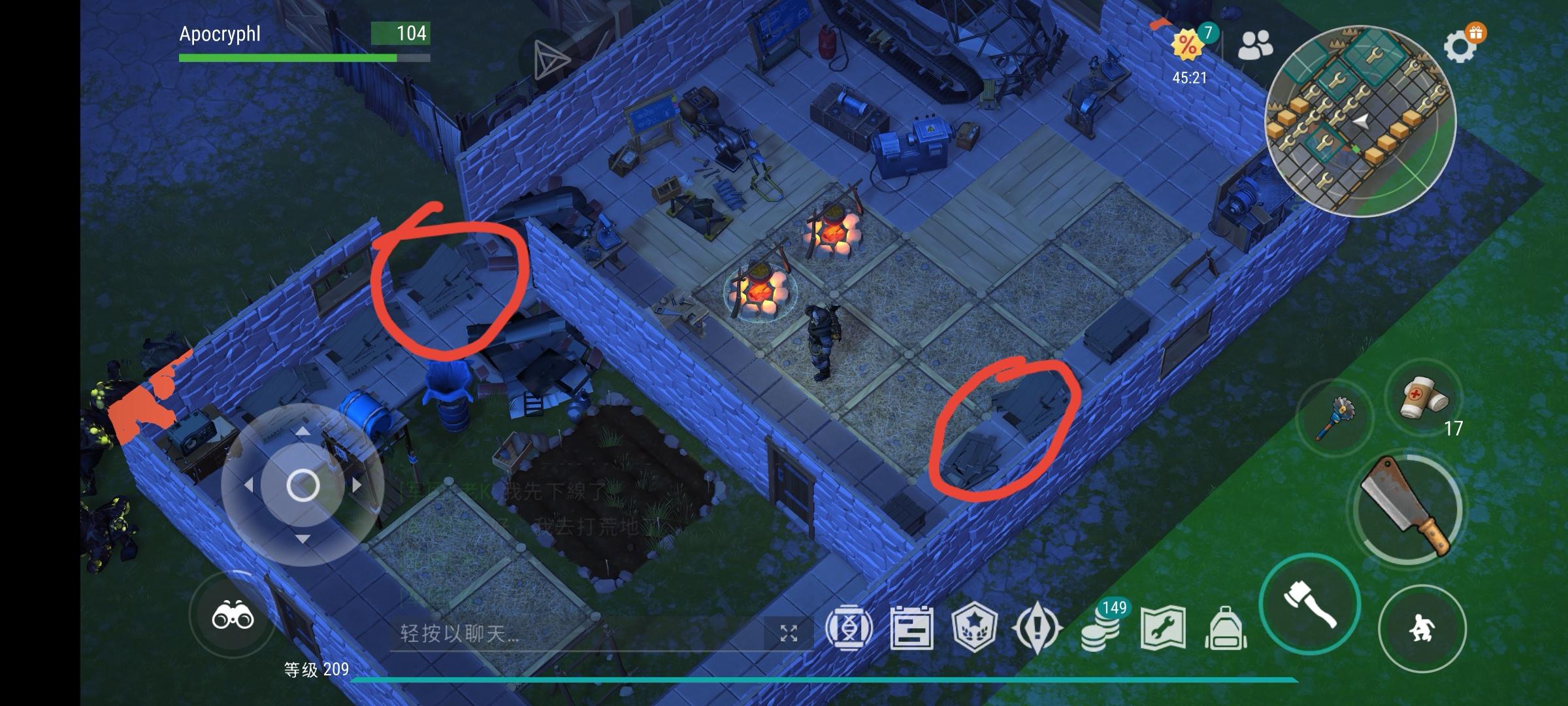 #地球末日生存抄家 一个炸弹能换三个枪+发电机一个。(酸洗池的位置) 一个炸弹,可以换一背包的厚织物+急救包+狐狸皮+皮革。6个箱子的位置。 互不干扰,就这个位置进去