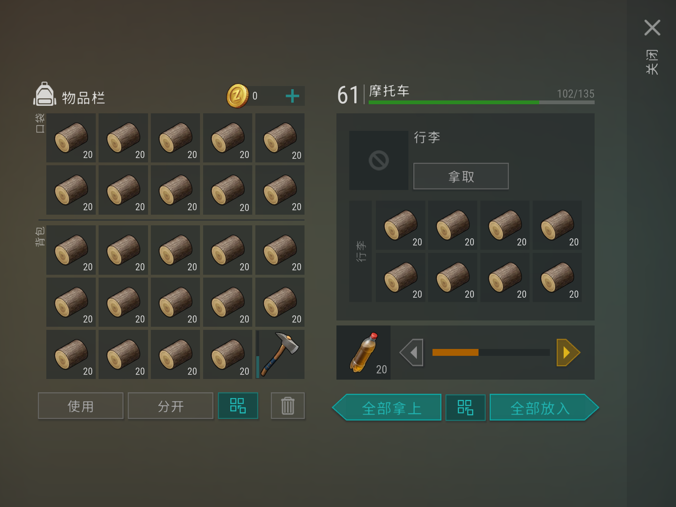 采用自动攻击僵尸的方法进房,角上有个收音机,从第二格卡入。 先将引擎放好,如果想要非常轻松的卡进房间,将引擎调整好角度,只要角度放好,卡个几次基本就能进去了,如果角度没调整好,就会比较困难。带4石斧头,通过砍掉外面两个设备以及开农田制造噪音。 从上到下的顺序开箱子 所幸这家箱子比较直观,从上到下的,不然放的乱七八糟,我也没法放图,乌漆麻黑也不知道开的哪个箱子