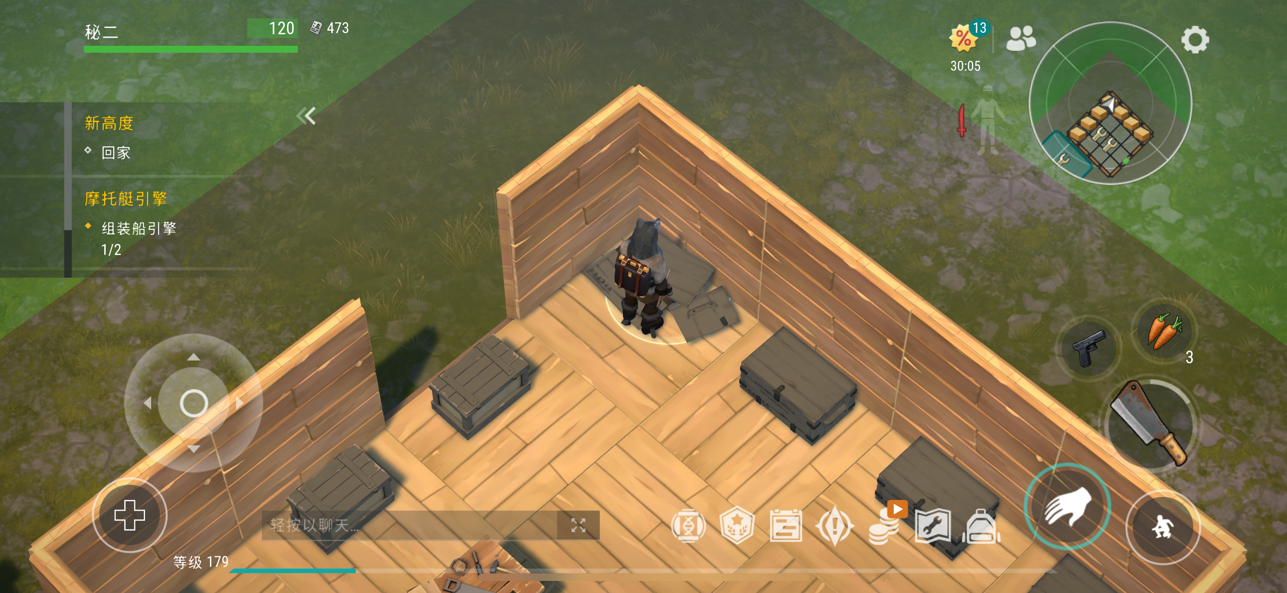 一把铁斧,石斧若干。 地图上出现的位置不一样,要抄的家也不一样。 这个是9x9木头房,基础资源和吃的比较多,不算穷。 图上两个工作台之间可以卡摩托。