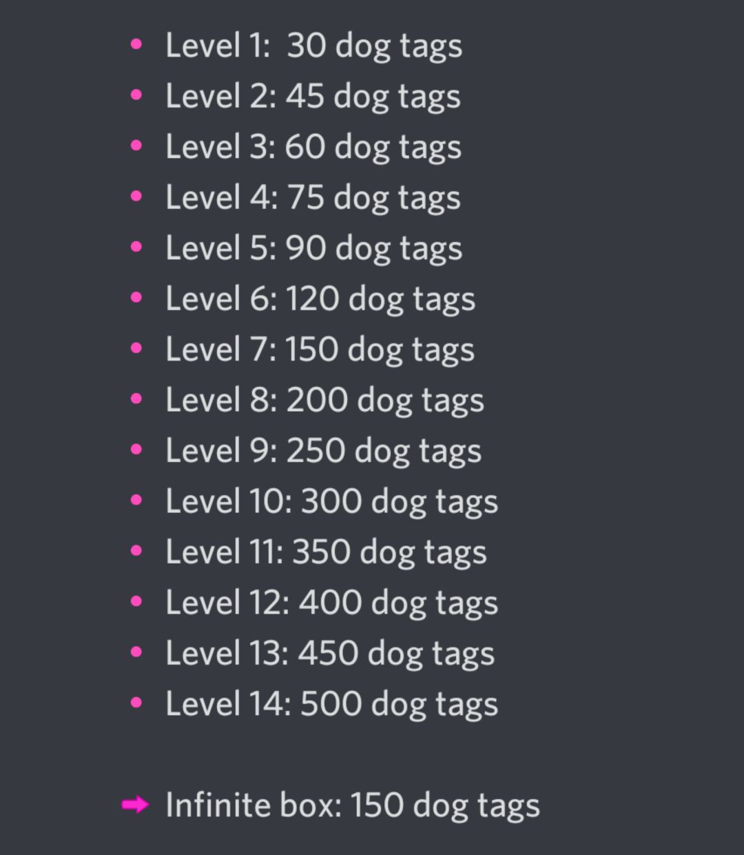 PVP升级所需狗牌明细