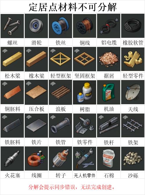 地末1.20.6版本迎来一次不小的更新,荒地无人机和定居点两部分。无人机属于鸡肋,纯纯的氪点,选择性玩。定居点的内容有一些新的变化,摆烂的可以看一看。 定居点本次更新三个全新的四级工作台(木工房更新的锯木机之前就有,此次更新个配方),新出9个物品材料。工坊的电子工作台(产转子和线圈),铸造间的拉床(产铁杆),浇铸台(铜坯料),拉丝台(铜线)。装配间的焊接工作台(产铁架),装配台(坚固框架),木工房