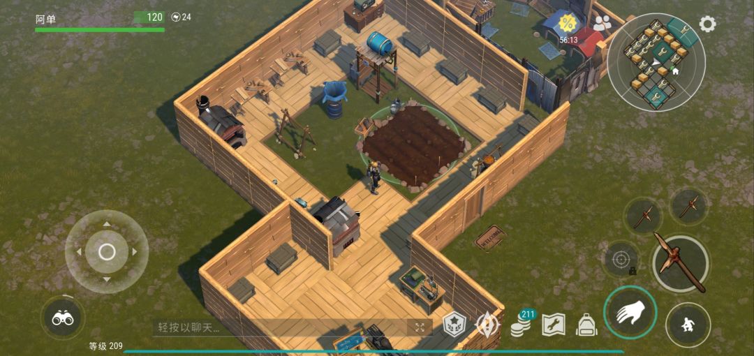 萌新家,3个箱子,拆墙需要1铁斧,1斧头,右边木工台有20木头,田里20种子,营火20胡萝卜,其他无了。(带1铁斧,3斧头即可 )