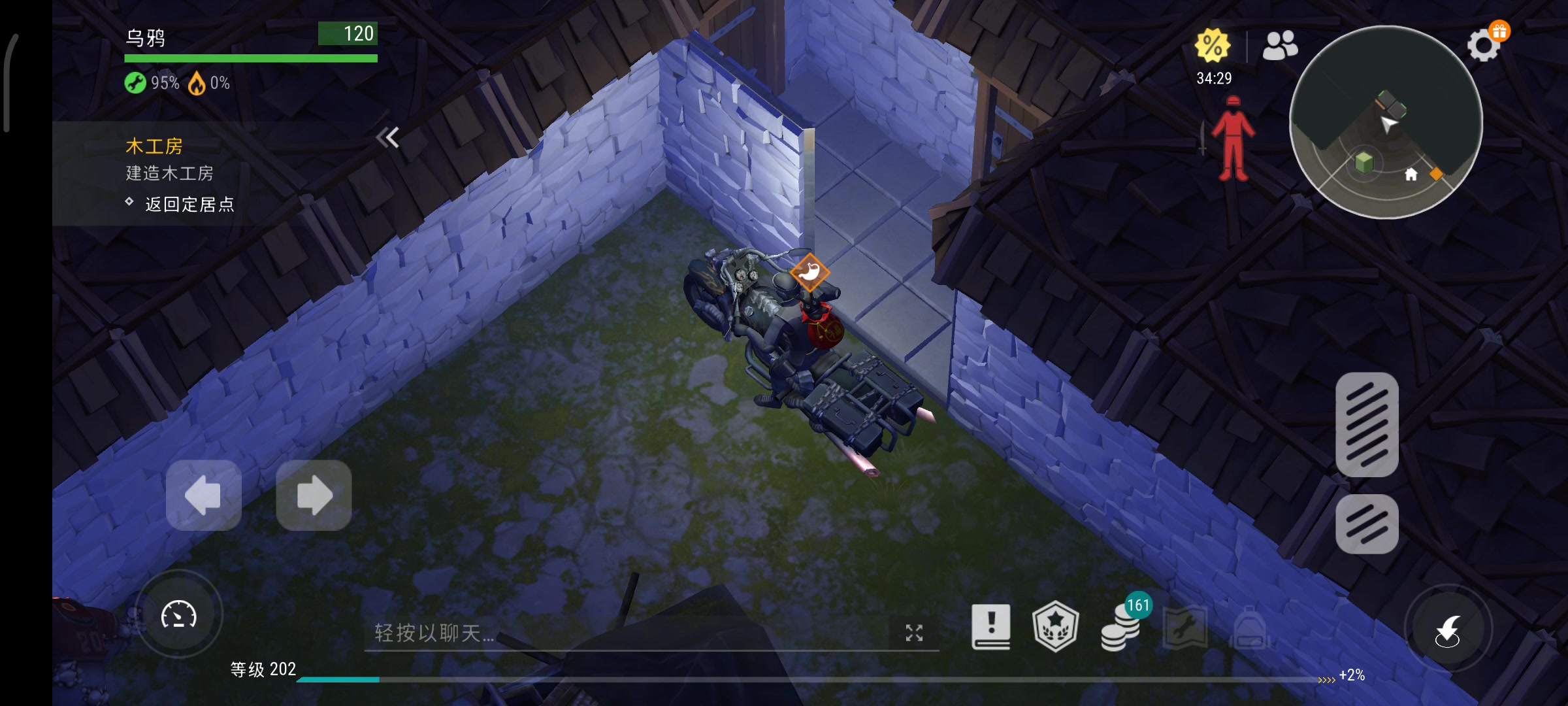 未知文字,或者搜不到的情况,是可以选择查房的 查房就是直接进去,只看布局,啥都别敲,啥都别拿,不发出噪音 这样你就可以回去拿斧子了,那个家也开始倒计时,这时的死亡回城次数是保留的 找到缺口,摩托放空油,就可以卡位了 对于摩托卡位,车头,车身,车尾不能有障碍物,就像图中的木头加工,铁锭加工,肉干加工都要敲掉,才能获取身位 摩托卡位也有三种 一种就是这个车头进去的叫卡车头,第二种是车屁股卡车尾 还有最