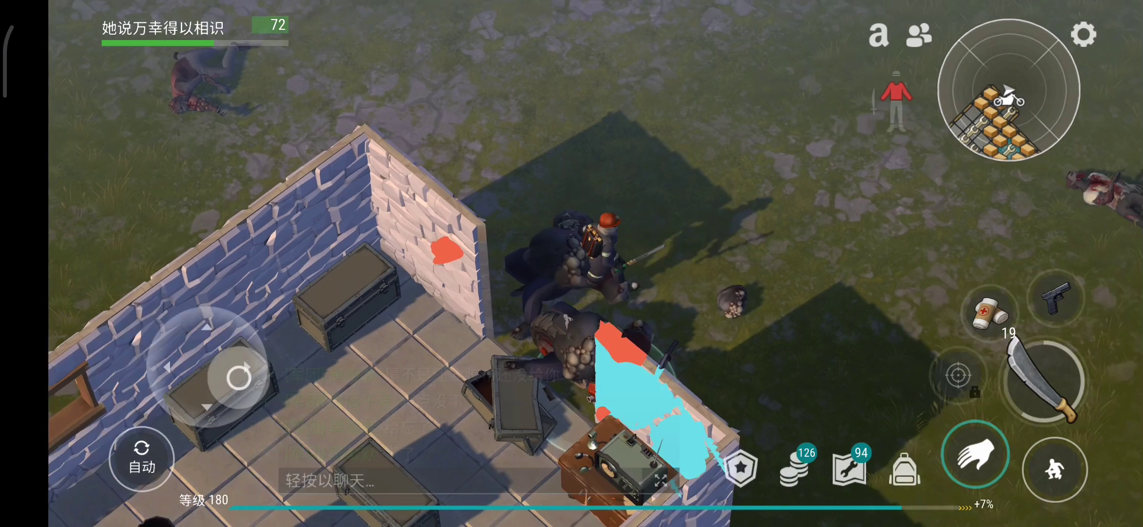 准备工作:1引擎、1c4、1铁斧、若干石斧、武器 如图所示到左上角,首先你得确定开自动能往铁皮房右下角走 接着把车里油排空注意小地图左边黄方块,第四个炸,然后再往里面砍一面木墙,清理第一波尸潮 把摩托车贴墙放好在第五格黄色格子,车尾巴在第五和第六个黄色格子的中间 然后把引擎放在砍的木墙的那一格开自动卡进去,里面都是大箱子和架子贴左边铁皮墙放,所以这个角度才很好卡进去 接着就是慢慢搬然后摸
