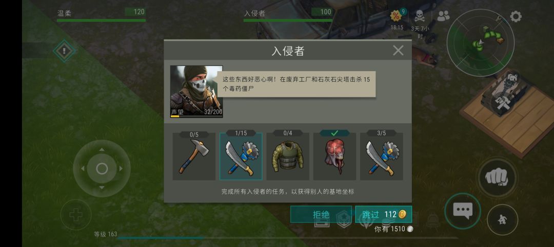 两个资源图,分三级,木头和石头 一级木,警局两兄弟(胖瘦) 二级木,饥饿的狼 三级图,上校(军胖) 一级石,死人脸(红色) 二级石,浮肿提米(绿色) 三级石,五二麦克(盾牌僵尸) 每次进野图,都会随机出现 是为了抄家任务准备的特殊精英怪 如视频所示,这样找会比较简单方便,具体也是看运气 二三级图,可以利用港口,加油站,磁盘坐标这些中转站,来回刷节省体力或者汽油 一级图可以直接光着进去,东西放摩托车