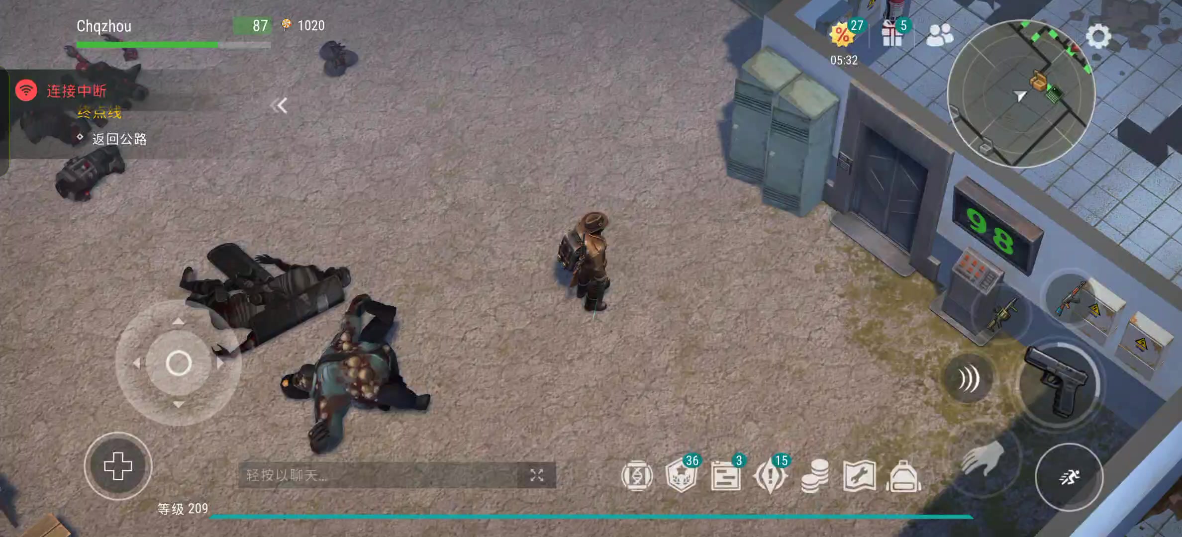 面板:调味肉10%,ak18伤,格洛克22伤 参考北门山的荣耀大佬的打法,开启终端后向前走位观察是否有暴乱(若无暴乱可以切换手雷) 挨前排小僵尸一下,若小僵尸没a到要主动凑到脸上被打,随后扭一下绕开大僵尸,瞄准暴乱开炸,ak点头/喷子技能收尾。暴乱若不开盾,剩余60血可以用球棒技能(15+25)和ak刺刀技能(20)收尾 没有主动技能模组,以上都可以用普通枪点,消耗不会比有模组大很多