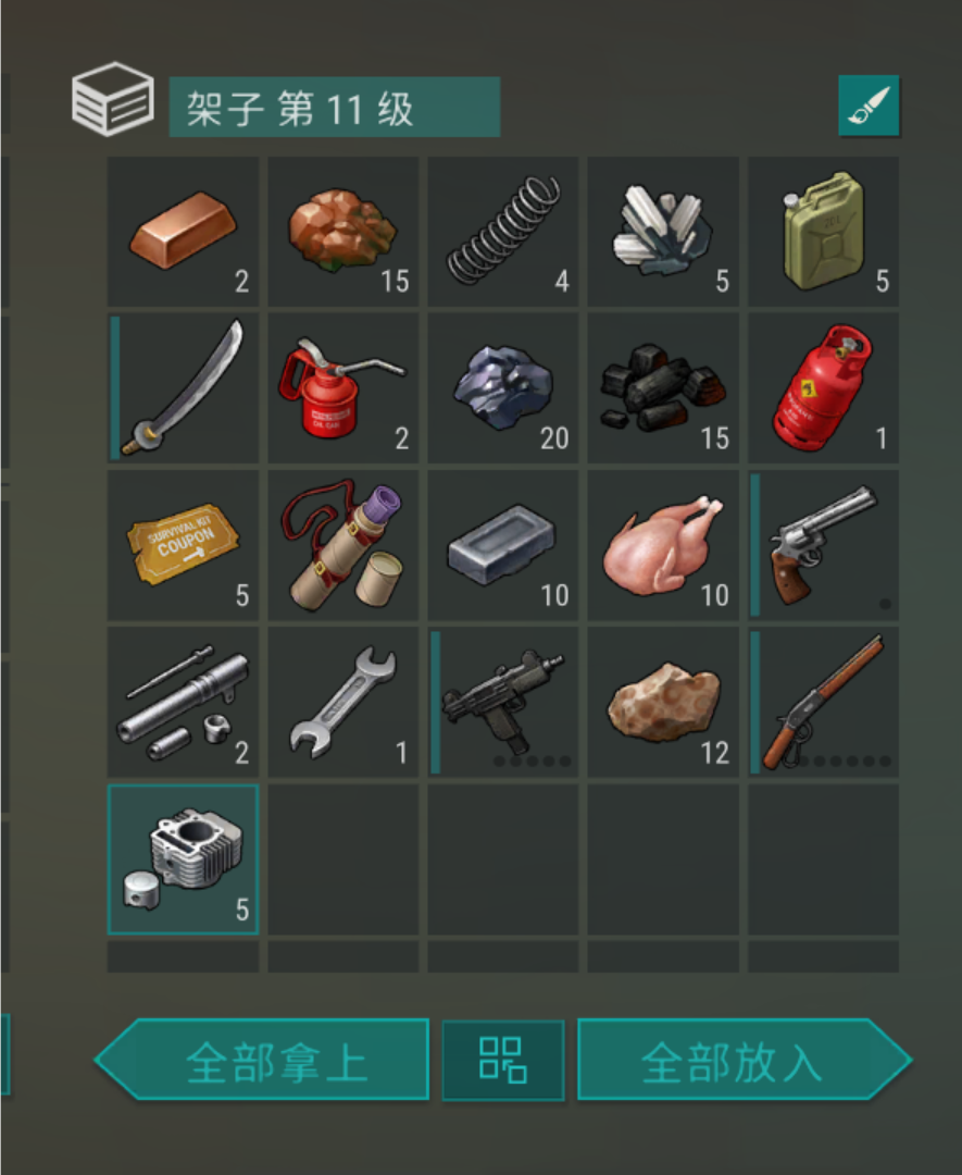 今天一级图打资源第一局松树丛跑出来几个喷毒僵尸,还遇到科瓦斯基中士,怕是警局回血怪就没打,底下肃清的车有厚血僵尸守着,摸尸给7个起源纹章。于是跑到石灰石挖铁矿。第一局石灰石遇到军事营地,有受伤的要我拿绷带救他,没救,营地里1砍刀2个半耐久的绿裤子,一点耐久的机枪和断指。第二次石灰石刷新出个病态大嚼者守尸,木矛背刺出图反复打的,人类尸体给了房子钥匙,旁边箱子有1锤子,房子里是普通帽子裤子。就