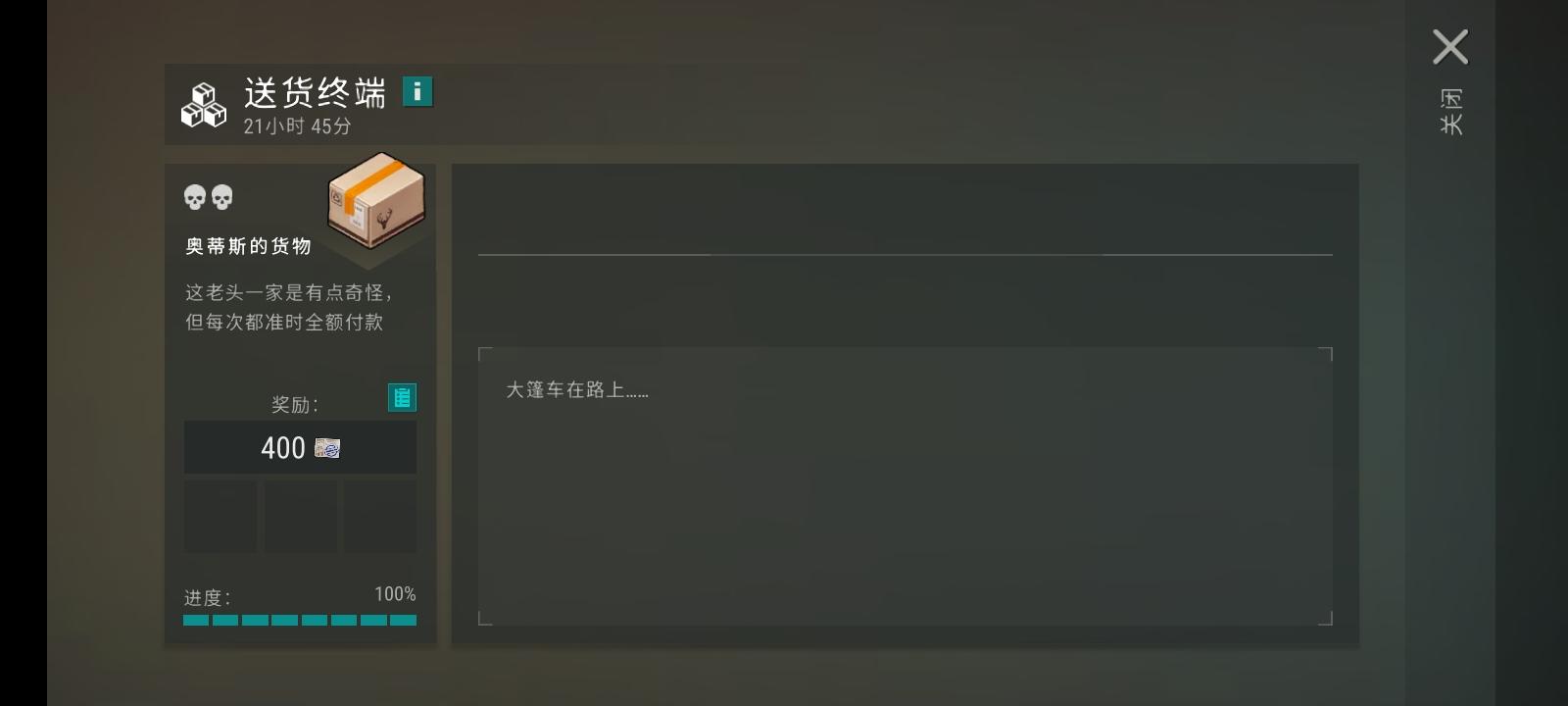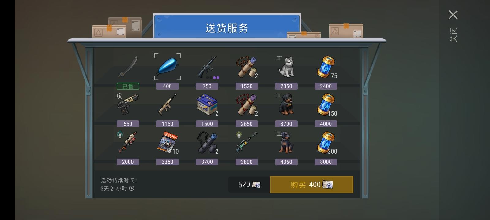 打包了木板用4个包裹换了个油箱,看摩托车需要这个材料。就打包木板的话,这些物资还换什么好,还有三天。
